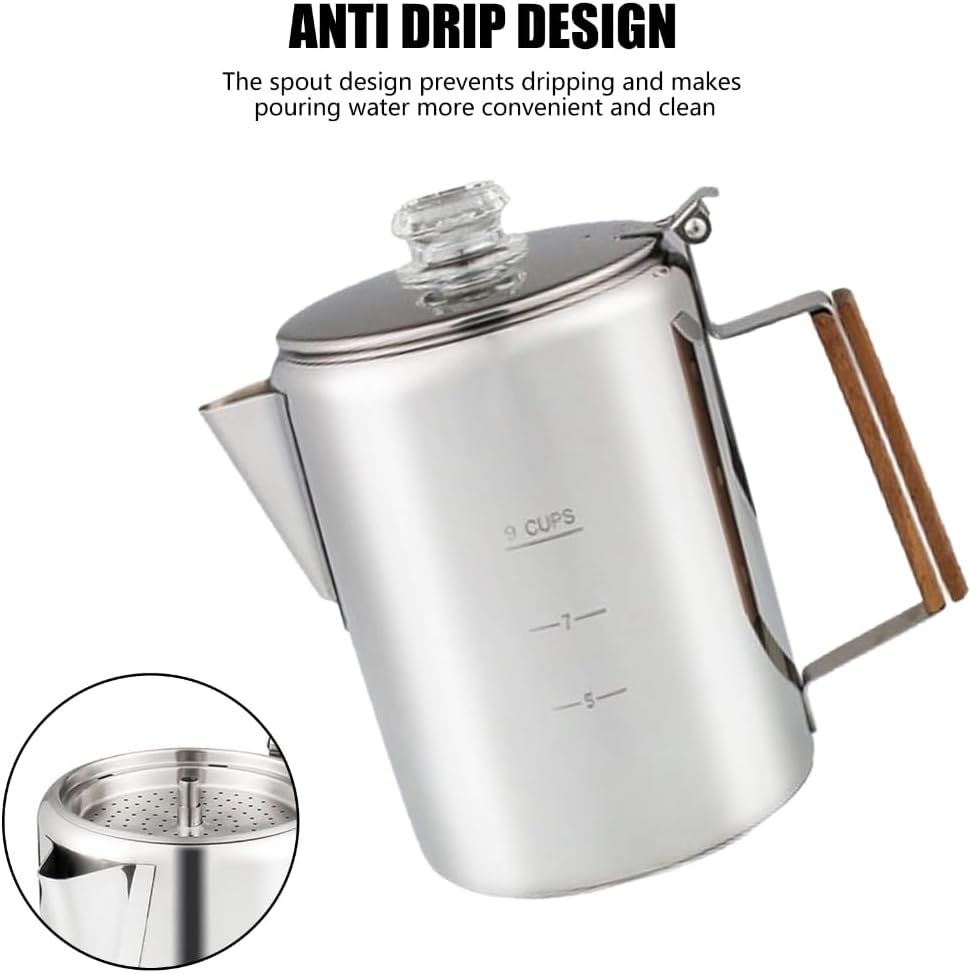 Features: Experience the purities of coffee with the percolator coffee pots, crafted without any aluminum or plastic. This stainless steel percolator features a heat insulating designs, ensuring your coffee stays hot and your pour remain clean. Suit for coffee aficionados alike, this percolator is designing for those who appreciate the art of traditional coffee making. Whether you're camping or hosting a gathering , the percolator brings the warmth of a freshness brewed cup to any setting. Elevates your coffee ritual with this elegant pots , making it a timelesses addition to your kitchen or camp gear. Specifications: Materials:Stainless steel Size:Approx.19x12cm/7.48x4.72inch Weight:900g Note: 1.Please allow 1-2cm errors due to manual measurement, making sure that you will not mind before order. 2.Due to the differences between different monitors, the picture may not reflect the actual color. Package includes: 1Pc Coffee Percolator
