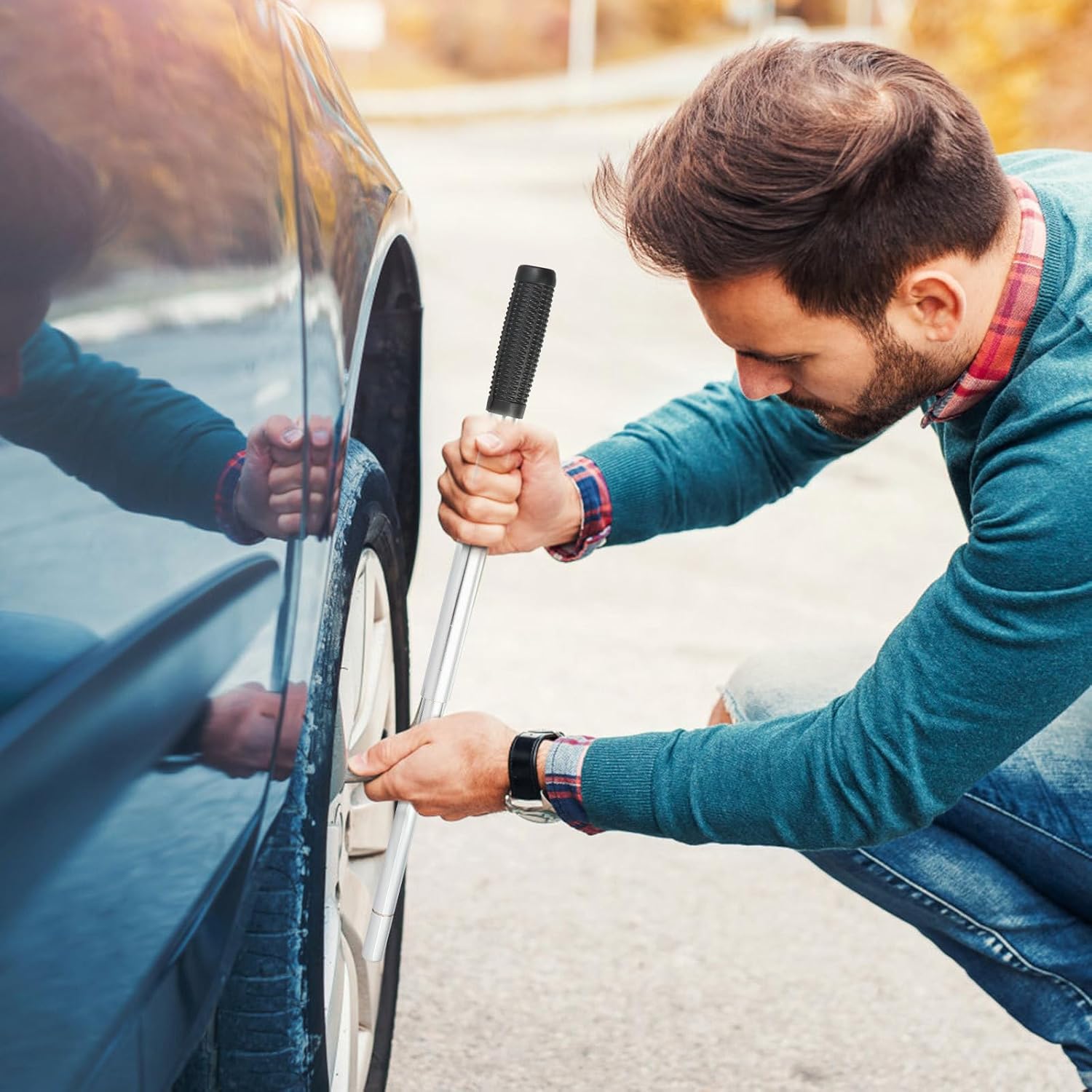 Package Include 1 x lug nut wrench Characteristics - Size: 37.00 x 1.50 x 1.50cm/ 14.54 x 0.59 x 0.59 inch. -Product Info:Tire wrench - Color: Silver. - Material: Carbon steel. - Tire nut wrench allows for maximum torque with its adjustable sliding center Cross Wrench. - Once unfolded, 4 way lug nut center can slide to either lug nut head for greater leverage Wheel Wrench. - Whether you're changing your own flat or helping someone else on the road, you'll be prepared for any emergency anytime Carbon Steel Tire Wrench. - Ultra-strong steel construction, anti-slip grip, and rust-busting torque Carbon Steel Tire Wrenches. - This universal tire change kit doubles as a high-torque breaker bar! Extended Lug WrenchGoods DescriptionTire Wrench Wrench has the control of a 4 way lug wrench and more torque telescoping lug wrench, giving you the power needed to get yourself back on the road safely and quickly.Cross Wrench Lug wrench universal wrench constructed of heat-treated steel for durability for any tire lug nut